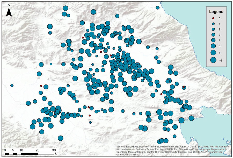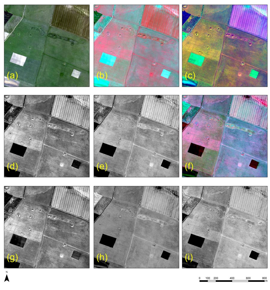 Dr Agapiou’s research hopes to address the problem of accurately detecting buried remains when they lie in a non-homogeneous area – meaning there are different types of vegetation or soil that cause a poorer contrast due to the extra unwanted information or ‘noise’, making it more difficult to pick out background features. Dr Agapiou successfully demonstrated that this issue could be overcome by using a method that combines suppression of the surrounding vegetation in images of a case study area with complex algorithms that can suppress the reflectance of the surrounding vegetation to identify crop marks. His initial work, using a known archaeological site in Cyprus, successfully demonstrated that this novel method worked well for interpretation of archaeological features in a non-homogenous area, and Dr Agapiou suggests that continuing to develop the algorithms used within the model will further improve the results.