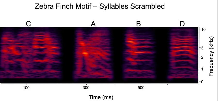 对斑胸草雀来说,顺序比结构更重要,这是很诱人的假设,因为这是人类语言的典型工作方式:你可以说不同的重音或不同的口音,但语言意义是相同的。然而,如果你改变一个单词或句子中单词的音节顺序,意思可能会完全改变。