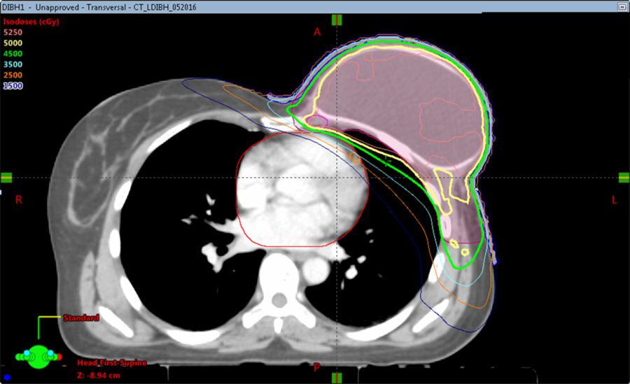 最后,该团队还能够表明Dibh降低了暴露于辐射的对侧乳房的量,降低了对对侧乳房的未来发病率的风险。