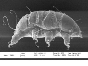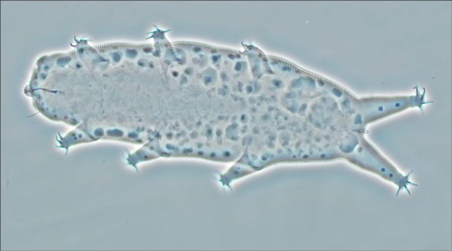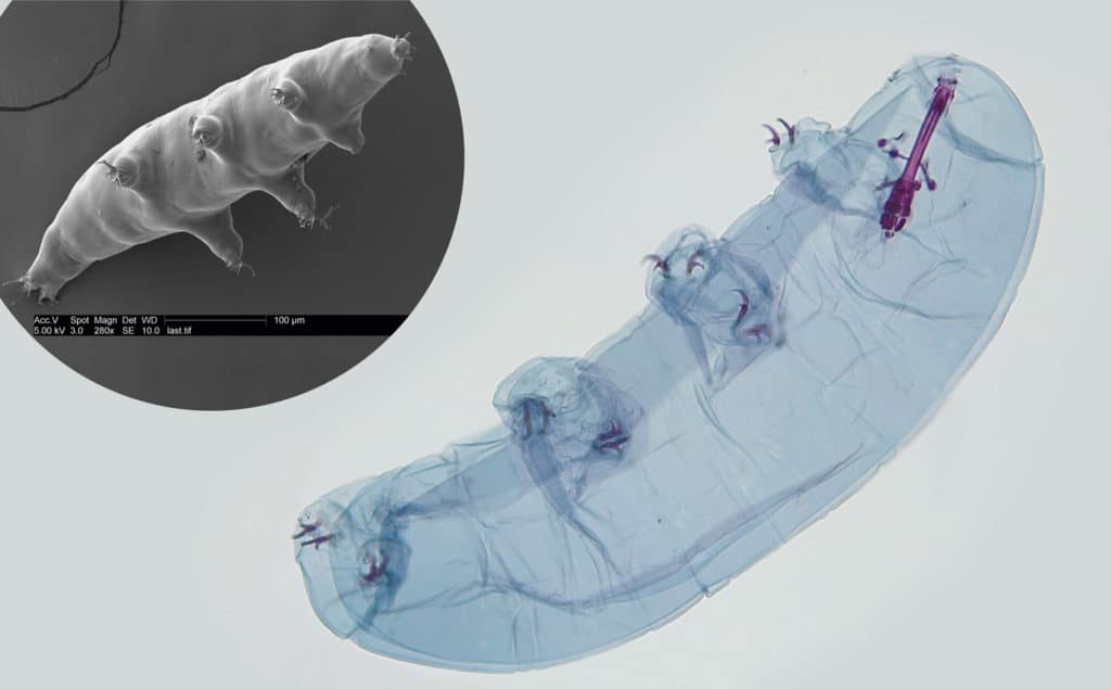 水熊居住在他们的绰号上,短,丰满,圆柱形的圆柱形,通常小于毫米长,八条腿每个爪子在多个爪子中结束。在每个大陆上发现,在从潮湿的苔藓到沙丘或海洋深度的环境中,陆地物种有能力进入被称为“阴道症”的悬浮动画。这使得水熊在极端条件下存活,包括从近距离零到150摄氏度,巨大压力,几乎完全真空的温度,并且电离辐射足以杀死人类几次。