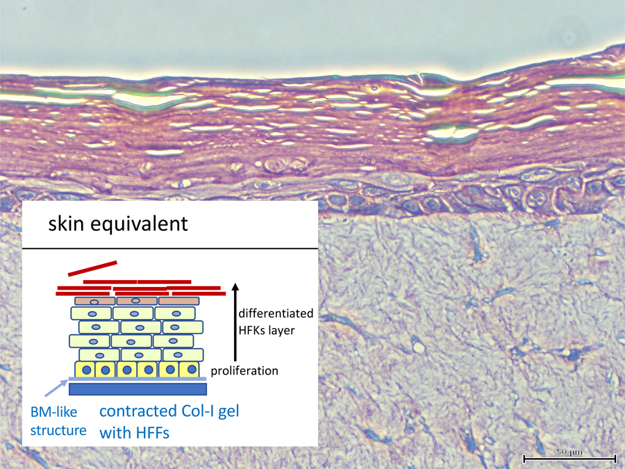 富士崎博士和同事们对不同类型的基材上的Heks感兴趣。I型胶原(Col-i)是结缔组织的必要组分,例如结缔组织。真皮和骨头。它形成原纤维;原纤维的不同布置提供了不同的结构,形状和强度。胶原蛋白原纤维可以作为细胞的支架,也与其他蛋白质相互作用以形成培养系统中其他细胞类型的支持。在活体中,HEKS不会直接坚持Col-I。一个名为'地下室膜'的结构连接Heks和Col-i原纤维。在培养系统中,HEKS根据培养条件在Col-I原纤维上产生基底膜组分。