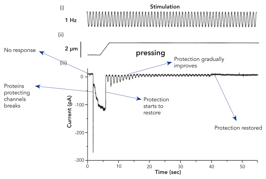 由于机械感测器在调节生理活动中发挥的作用,机械感测器功能障碍可能会产生严重的后果。它们在肌营养不良、心律失常、高血压和转移性癌症中发挥重要作用。静息细胞在机械上是静止的,但病细胞是畸形的。例如,Sachs博士和他的团队研究了一种遗传性血液病——红细胞脱水导致贫血。干燥细胞症被追溯至名为压电1的MSC基因突变。萨克斯博士的团队描述了这些突变的分子特性,提出了这些通道在正常红细胞中起什么作用的问题。它们似乎增加了细胞的流动性,使它们更容易变形,并防止它们卡在小毛细血管中。
