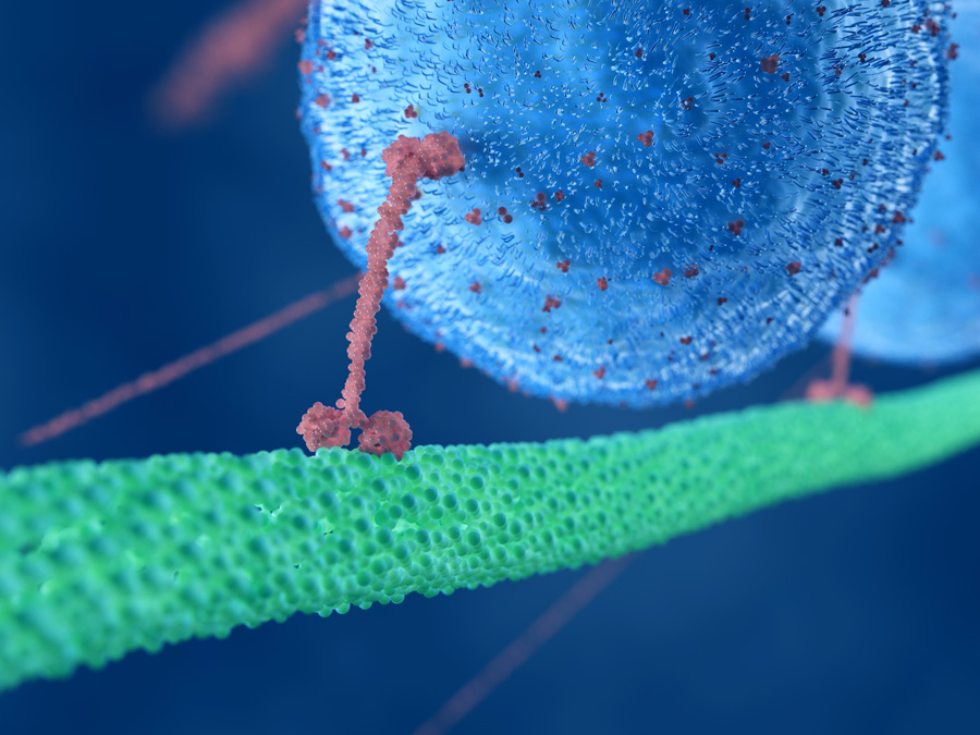 运动蛋白产生的机械力属于动力蛋白、动力蛋白和肌凝蛋白三大类。这些蛋白质能够沿着细胞骨架纤维爬行,将化学能转化为机械力。它们在通过细胞质和细胞膜运输细胞内成分方面起主要作用。