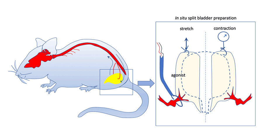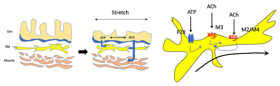 泌尿系统在排泄方面有着特别重要的作用,排泄是将废物从体内排出。在组成泌尿系统的器官中,膀胱有两个功能:储存和释放尿液。当膀胱被灌满时,膀胱内壁(即尿路上皮)的拉伸会导致几种物质的释放,这些物质反过来会激活中枢神经系统(CNS)的反应。其中三磷酸腺苷(ATP)是膀胱传入神经纤维的主要激活物。这些纤维与中枢神经系统通信,中枢神经系统控制导致膀胱收缩和尿液排出身体的反应。哥德堡大学萨尔格伦斯卡学院的贡纳·托宾教授开发了一种体内在大鼠中的模型进一步研究两个神经递质ATP和乙酰胆碱的相互作用,协调控制膀胱功能的反应。