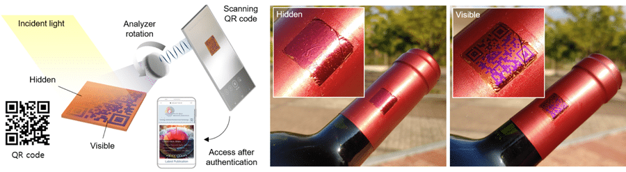 使用隐蔽偏振显示技术的超薄薄膜新型制造方法的研究博士歌曲的研究不会停止在美丽的颜色。探讨了全面选择的现实应用,展示了这项工作的高适用性和可扩展性。在QR码光学认证中实施其超薄薄膜技术,他们证明了它们在大型表面中的技术可扩展性。此外,使用它们的实例,它们掺入了薄膜 - 例如奢侈品饮料的弯曲瓶颈或快餐包装的翘曲表面 - 它们验证了在非传统表面上使用的制造薄膜的实用性,相反到平坦的横向表面,迄今为止在文献中展示。尽管在裸眼内,盖子偏振显示膜在结合在这些商业产品上,但是通过允许完美匹配的良好颜色选择实现 - ,在施加偏振光时,QR码被揭示,授予光学认证。