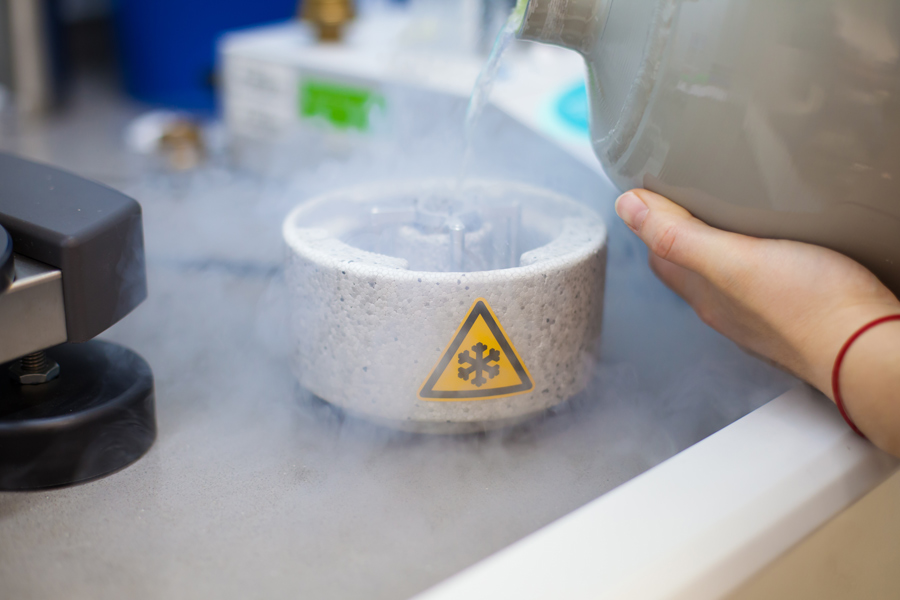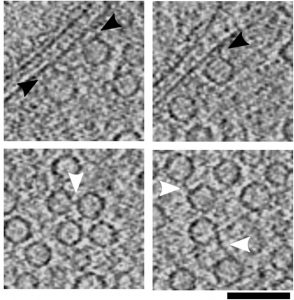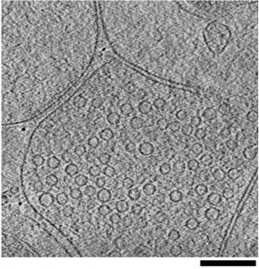 在低温电子显微镜中,样品被冷却得如此之快,以至于水分子没有足够的时间重新定向并形成冰晶,这使它们变成了玻璃状的固体形式,称为玻璃状状态。马克斯·普朗克生物化学研究所的Vladan Lučić博士是低温电子显微镜与断层扫描结合使用的专家,断层扫描是一种将一个样本的多个不同方向的图像结合起来形成三维图像(断层扫描图)的方法。这种方法可以获得高分辨率、充分水化、玻璃化的细胞样本的三维图像,并保存在它们原有的环境和状态中。利用这种方法,Lučić博士和他的合作者首次能够成像蛋白质复合物和囊泡,它们都位于突触末端,准备释放神经递质,并在轴突运输的过程中。这是一个重要的结果,因为它证实了囊泡的蛋白复合物参与释放神经递质可能合成细胞体内,然后通过轴突运输到突触,并提供一个同步视图所涉及的货物的蛋白质和脂质膜的运输。