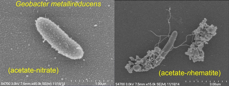 为了测试这一假设,邱教授和他的合作者审查了基于木材的生物炭对活动的影响Geobacter Metallireducens.,一种氧化短链脂肪酸,醇和单芳族化合物的厌氧细菌。在正常情况下,该细菌使用作为电子受体的不溶性Fe(III)氧化物。邱教授的结果表明,Biochar可以在醋酸氧化中的电子受体和电子供体在减少到铵的电子供体中发挥双重作用Geobacter Metallireducens.。因此,生物炭可以被视为生物可利用的电子或电子空位的储层,这可以解释其在有益土壤修正过程和土壤反硝化中的关键作用。