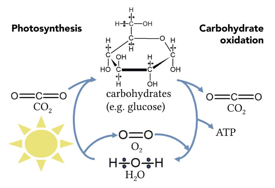 所有的生物都需要两样东西才能生存:能量的来源和构成细胞的有机碳的来源。这两种物质都是植物在光合作用中固定的,这使得这个过程对地球上的生命至关重要。在光合作用中,来自阳光的能量被用来将水和大气中的二氧化碳结合成葡萄糖,这是碳水化合物的一种形式。太阳能以化学能的形式储存在葡萄糖分子中碳、氢、氧原子之间的化学键中。