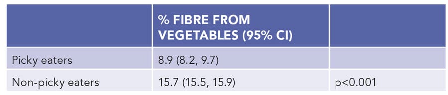 营养摄入的差异可以解释为挑食者比不挑食者摄入较少的肉、鱼、蔬菜和水果。挑食者在7岁时摄入的含糖食物和饮料也高于不挑食者。研究人员建议,除了鼓励父母在孩子的饮食中多吃营养丰富的食物,少吃营养不良的食物外,缓解父母对挑食者营养摄入不足的担忧应该是一个重点。