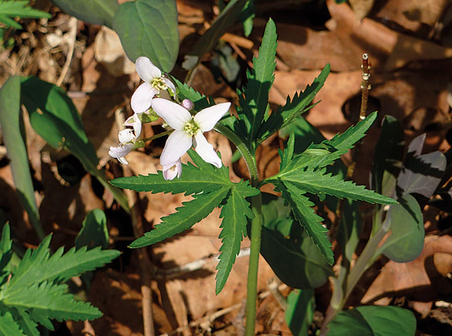 Cutleaf Toothwort和黄色鳟鱼百合秀早期春天开花
