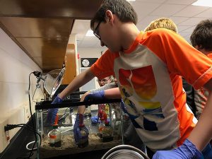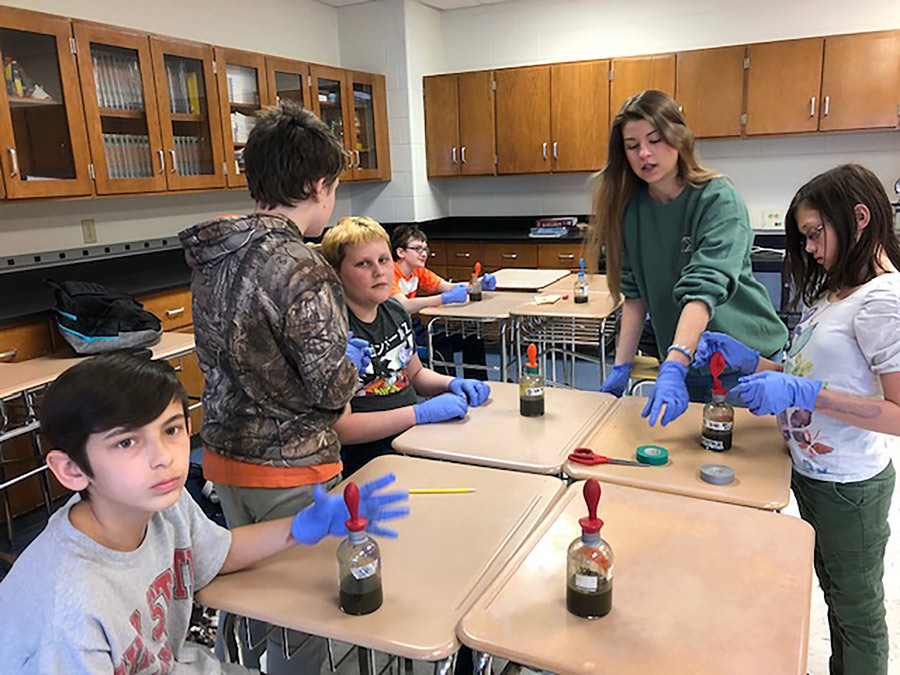 整个课程多级教学Clarkson大学学生正在修课帮助为中学学习者设计基于项目的活动处理食品垃圾、厌氧消化炉和沼气生产这些都是与教职人员一起展示的最受欢迎的实验之一是科学类实验,学生用小口玻璃瓶和气球制造小型厌氧生物反应器微生物消化瓶中的有机物,产生燃气吹气球