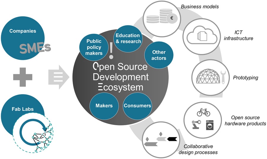 为了充分释放OSH的潜力,OpenNext的研究人员通过开放的设计和共同开发和中小企业的产品开发,寻求消费者和公民的参与和参与。研究人员通过使用在线和基层社区的开放创新的案例研究来展示成功的公司社区合作。