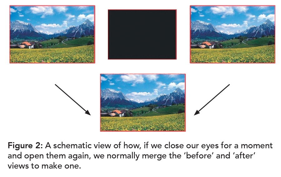 If, when we are looking at something, we close our eyes for a moment and then open them again, we normally see ‘the same’ as what we saw before, as shown schematically in Figure 2. The merging of the ‘before’ and ‘after’ views may be seen as ICMUP.