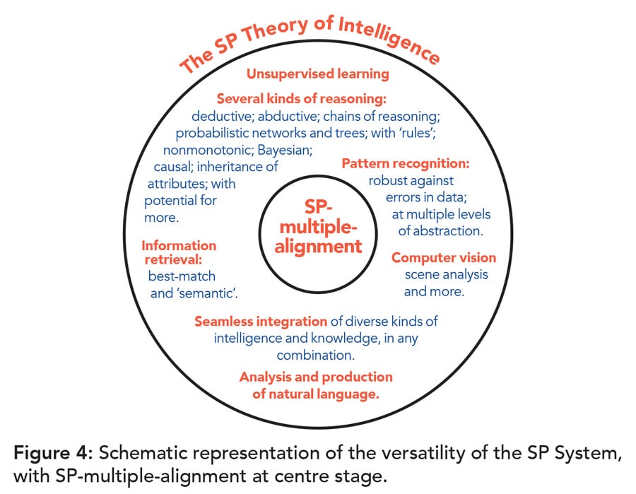 这项研究中的一个关键思想是,大部分人类学习,感知和认知可以被理解为信息的压缩(更多以下)。来自生物信息学中“多序列对齐”概念的SP多对准的强大概念,是本研究的重要发展。