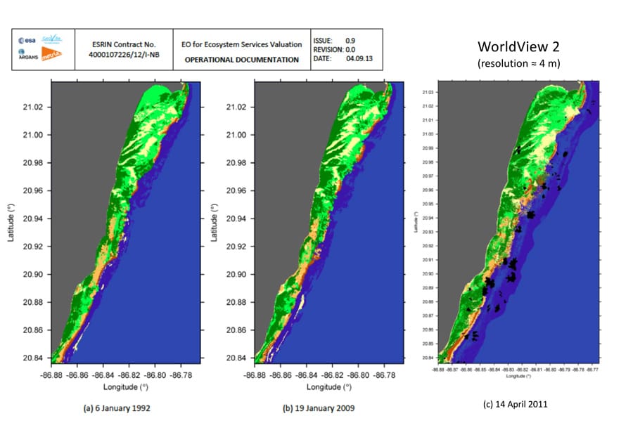 卫星遥感提供极好的机会,作为辅助工具原封不动现场测量理解大型LAI深入模型模式并比较一段时间内生境变化空间尺度遥感分析很容易覆盖所需面积,以千米计2解析具体的环境问题或获取真正的区域图象从孤立的实地调查中获取这一点并不容易这种方法还可以量化最大贡献区存储蓝碳并识别特别感兴趣的管理领域可能需要现场调查