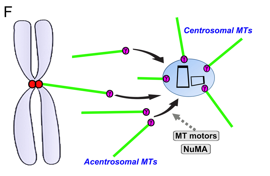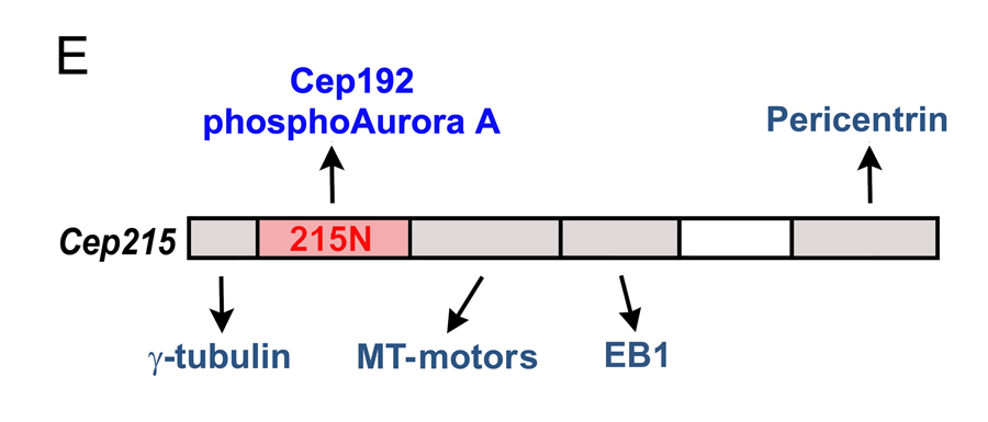 由于该团队已经确认了纺锤极构建蛋白Cep192和215N肽之间的关系,然后他们通过观察215N和中心体的微管成核蛋白γ-微管蛋白之间的关系,研究了Cep215是否在形成纺锤极中发挥了类似的作用。研究人员使用RNAi在有丝分裂细胞中耗竭215N/Cep215,并观察γ-微管蛋白的丰度,发现与使用215N/Cep215的对照组相比,耗竭215N的细胞中保留了高达65%的γ-微管蛋白。这与在有丝分裂中心体中几乎所有γ微管蛋白(约93%)消失的cep192细胞形成鲜明对比,表明Cep215在γ微管蛋白招募中只起很小的作用。
