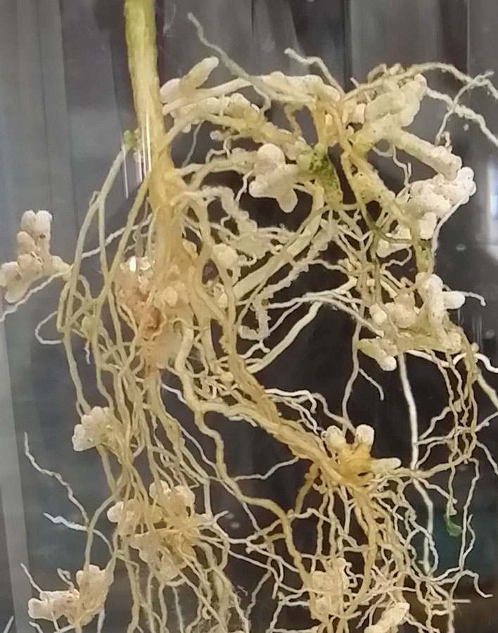 这意味着细菌生活在植物的根系中,并将氮气从土壤中的空气转化为氨,然后由细菌和植物使用。细菌受益于能够生活在植物根部,在那里他们获得由植物产生的食物的生长,而植物反过来受益于细菌产生的氮化合物。结果,豆类能够从土壤中占据更多的矿物质,从而增加它们含有的微量元素的量。