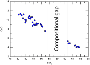 产生熔融岩浆的部分熔融过程和冷却过程中的结晶过程使火成岩化学更加复杂。深部地幔岩石只被少量熔化,一些岩石仍然是固体(部分熔化)。这种熔体在成分上可能与它的母岩类型有很大不同,因为这些元素在固态和液态之间的分裂是不同的。当这种熔体上升到较冷的地壳时,它将通过结晶一系列矿物而逐渐凝固。有时,一种在较高温度下结晶(变成固体)的矿物,随后会与剩余的熔体反应,形成一种全新的矿物。地球化学家面临的挑战是解开矿物、其母岩浆和原始地幔岩之间复杂的化学关系,以确定火成岩是如何结晶的。