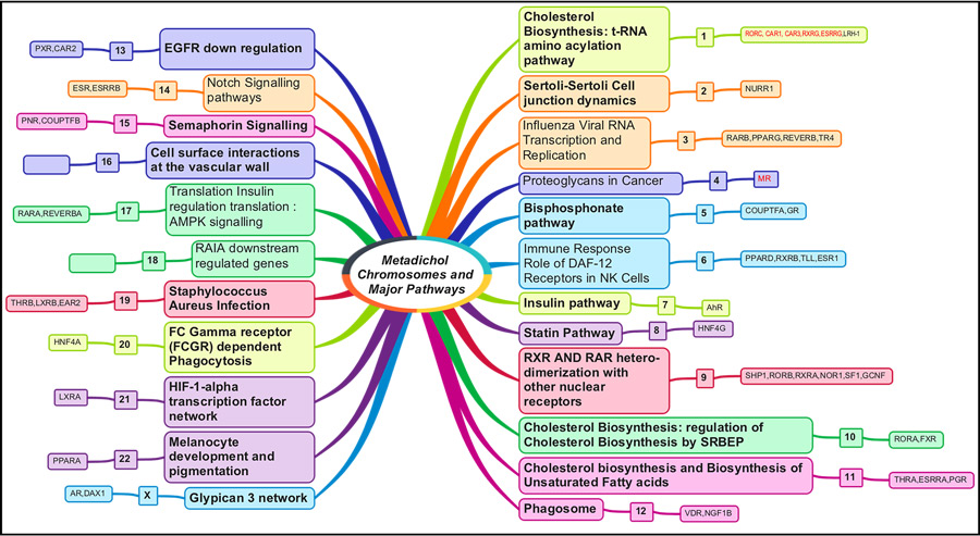 Metadichol®被认为是作用于维生素D受体(VDRs),可以发现在整个身体的许多不同组织,包括免疫细胞。Raghavan博士和他的团队发表的工作表明,它作为核受体,甲状腺A (THRA)和甲状腺B (ThRB),芳基烃受体(ARH),核受体ROR Gamma (RORC)和雌激素相关受体α (ESRRA)的逆激动剂。通过这个动作,它可以激活其他48个核受体。
