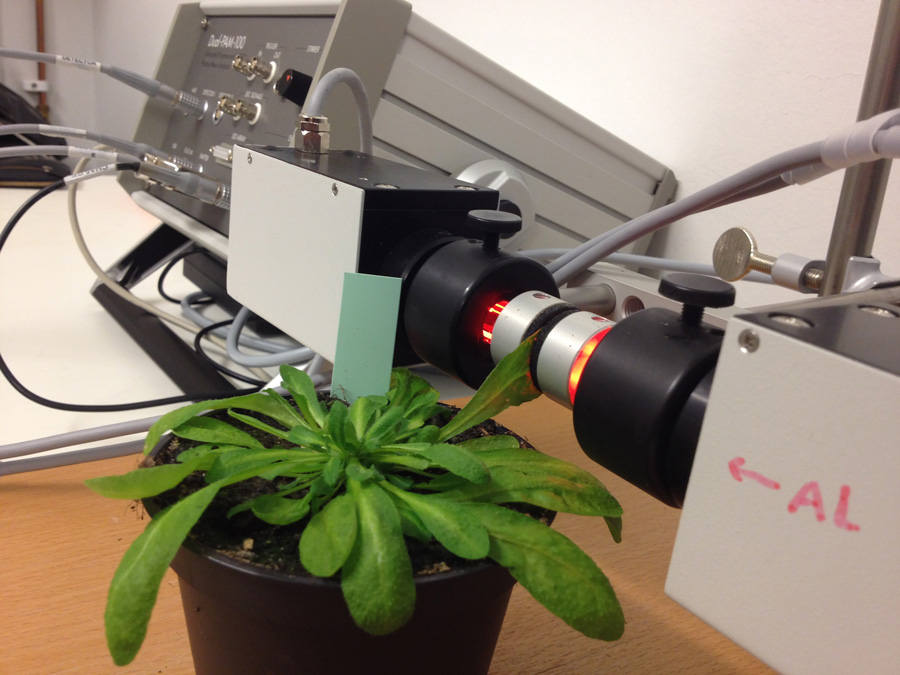 该团队于2019年发布了一篇论文,呈现叶绿素荧光的变化如何表明吸收光有多少用于光合作用和糖生产,以及在对多个光(NPQ)的光保护机制中的热量散发多少。健康,野生型拟南芥蒂利亚纳植物能够保持两种过程的良好平衡,避免从过量的光线造成有害和抑制生长的损伤。另一方面,突变植物受到光线波动的影响。