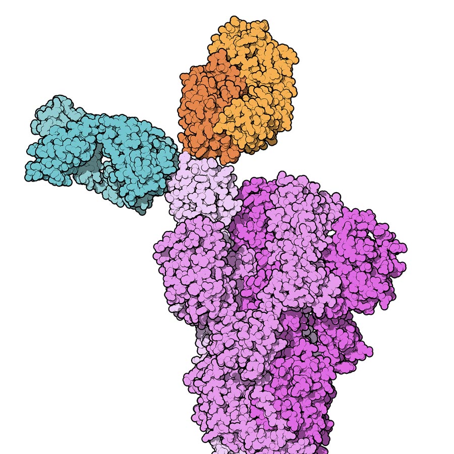 单克隆抗体使用SARS-COV-2插片蛋白质受体绑域病毒使用该蛋白质连接主机细胞(细胞上下空道内嵌),将自身绑定到特殊细胞受体-Angiotensin反转酶2(ACE2)受体