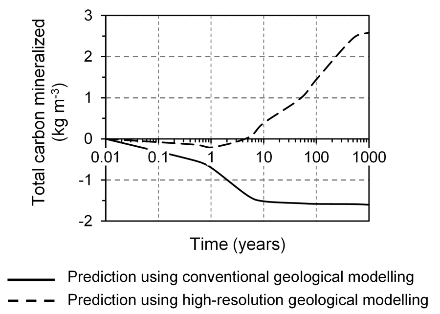 更高分辨率可捕捉流体和流体-岩石响应比传统构造地质模型更好的预测结果表明,远尺度建模严重低估碳酸盐矿形成相形之下,厘米尺度建模显示碳矿化预测值高六级,与现场测量完全一致具体地说,它包括详细的石化异化-0.5-1cm薄凝石和泥石层-称为“外形baffles--