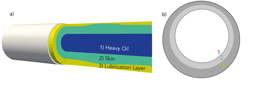 为了改善重油的输送,研究人员建议在管道内表面覆盖另一种液体,如水,同时充当“屏障”和“载体”。这一过程被称为润滑管道,其结果是形成一种称为岩心-环空流动的结构。这种结构类似于你在药店里可以找到的双核口红,外圈提供颜色,内圈提供水合作用——只是在这种情况下,水合作用环在外面,在管和内芯之间提供一个光滑的表面,减少摩擦。理解核心环空流的另一种简单方法是考虑滑雪。我们在滑雪时看到的是有人穿着滑雪板在一层雪上滑行。我们没有看到,也可能不容易理解的是,在雪面和滑雪板之间有一层很薄的水,这是由于我们体重施加的压力,雪板下面的雪瞬间融化而产生的。这层水层是运动的促进者,因为它减少了两个表面(雪和滑雪板)之间的摩擦。