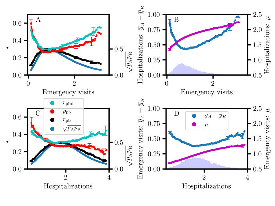 勒克博士强调需辨别三种代数式关联皮尔逊关系指数字数据之间的线性关系点双相关指二分位数数据不重叠三种形式相关联与2x2应急表比例变异相关将二分变量合并为单一统括性Pearson关联的常见实践有误导作用,他的工作显示点阶关联和二分系数测量二分变量关联性都受混淆效果的影响。