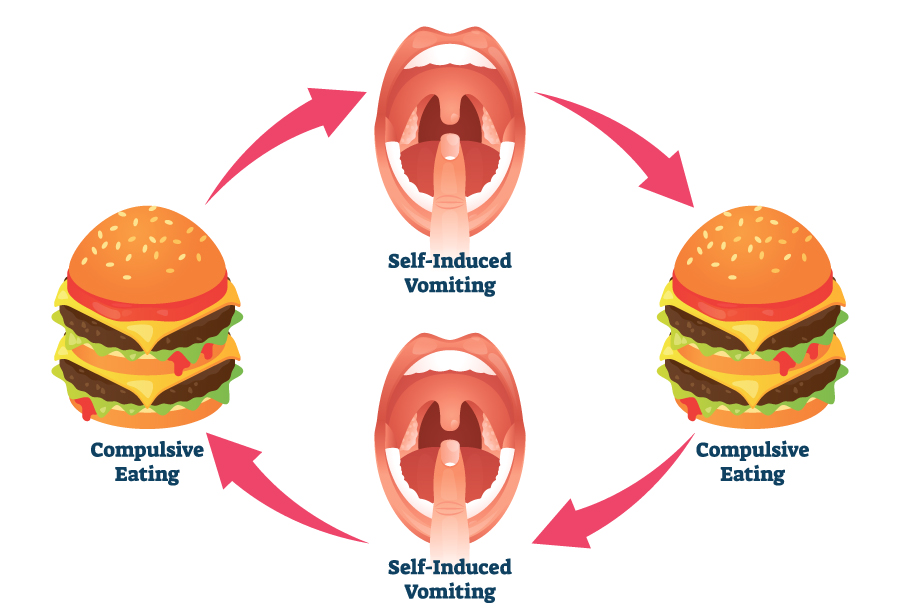 暴饮暴食通常与两种特定情况之一有关,神经性贪食症(BN)和暴饮暴食症(BED)。两者都是严重的精神疾病。暴食症包括吃大量食物,然后试图通过“清除”来弥补:呕吐、服用泻药、禁食或过度运动。患有床上综合症的人通常不会在暴饮暴食后排便,但通常会在暴饮暴食后经历类似的负面情绪。在英国,BED是最常见的饮食失调形式之一。