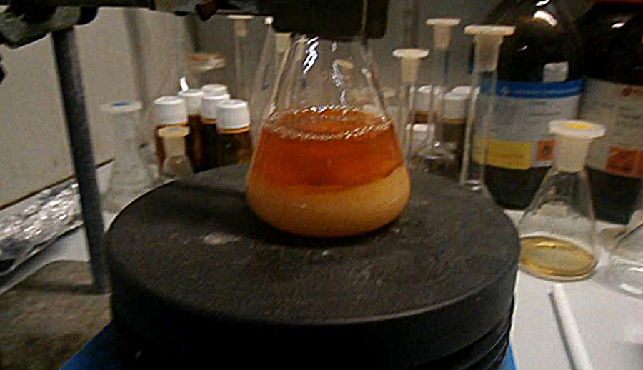 浸出后可应用溶剂提取法在提取阶段,水态金属溶液与有机溶剂发生接触,该溶剂可化学地与水态金属种类交互并形成稳定联结,例如分解离子双形紧随而来是剥离相位,金属有机溶剂将金属离子转至新的水溶液中,再从中提取净化金属,再以金属本身或金属盐的形式取回无金属有机溶剂现在可与浸漏液再次交互并绑定更多金属离子进程再重复