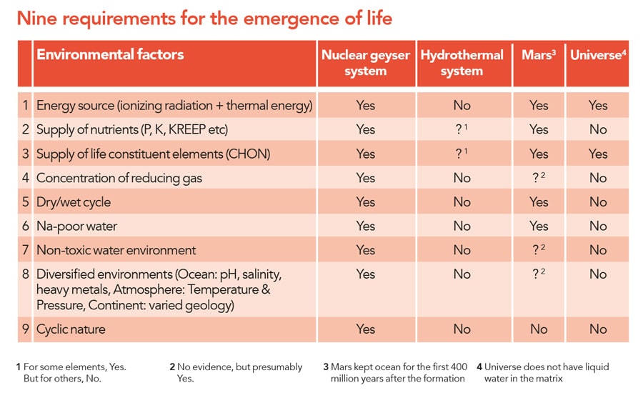 冥河生物科学研究人员认为,为了了解地球上的生命是如何开始的,我们需要了解特定的环境要求,必须满足这些条件才能使生命发生。他们确定了九种特定的条件,除非满足所有这些环境要求,否则生命就不能诞生。