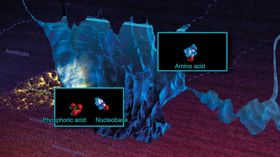 - 生命起源之前,需要强大的能量来源。仅仅来自太阳的能量还不足以分解无机化合物,如氮(N2),二氧化碳(CO2)和水(H2o)并将它们转化为复杂的有机分子。然而,天然核反应堆将提供足够的能量以驱动所需的反应。