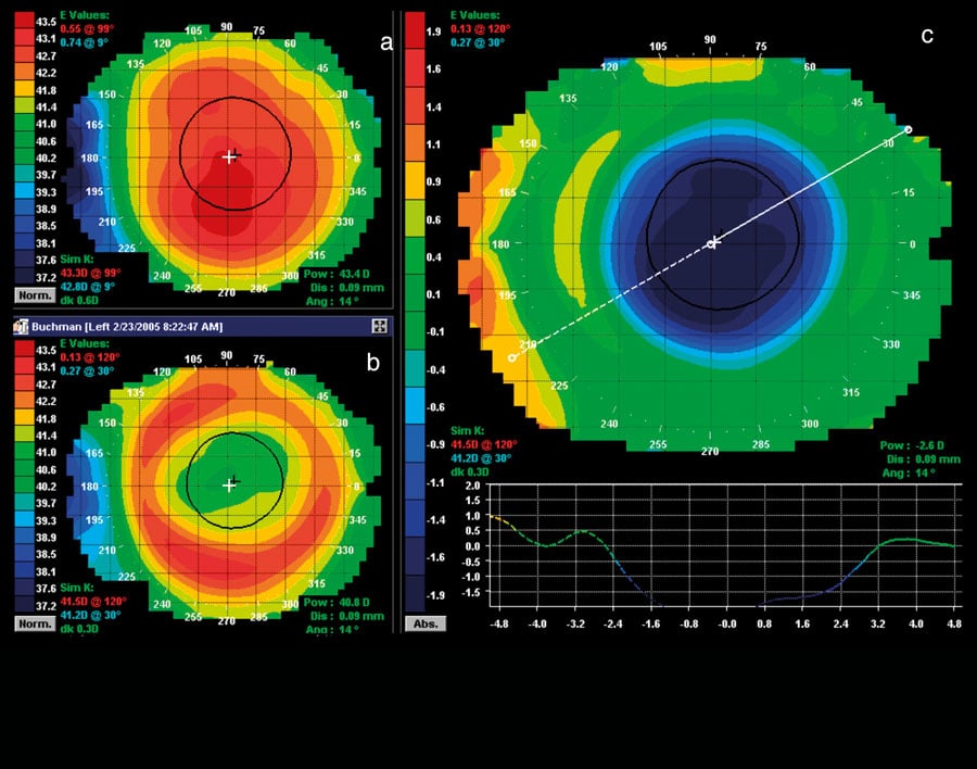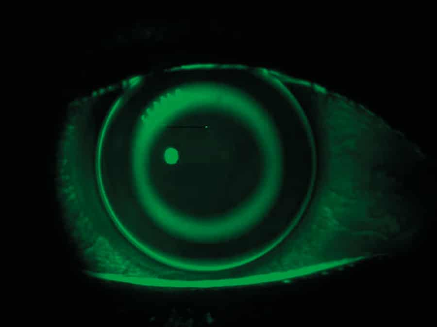 夜间OK的有益效果首先通过使用安装硬隐形镜重构角形轮廓(具体指顶部细胞层上部薄平面)实现,以便暂时修改或消除反射误差