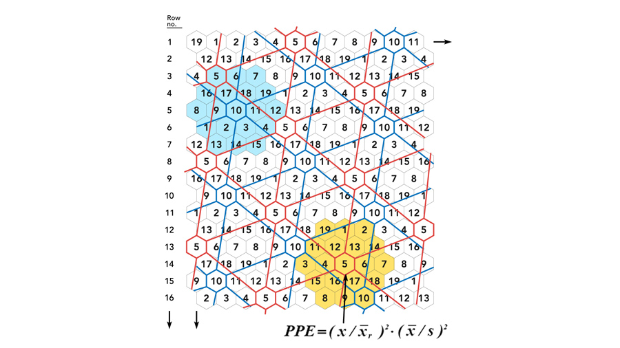传统的植物育种系统通过与下一代的比较来衡量生产力和性能稳定性。一种被称为“预测育种”的方法使在蜂巢选择设计中生长的植物和同胞系的高产和稳定产量成为可能。两个表型方程评价的产量和稳定性在同一,而不是在连续世代。这提高了选择效率,降低了选择成本,缩短了品种释放时间,加速了可能的年度遗传改良。主植物表型方程(PPE)考虑的是每个单株的产量或其他性状与其邻近的运动环植株的比较,并考虑了兄弟系表达所考虑性状的稳定性(如图2所示)。