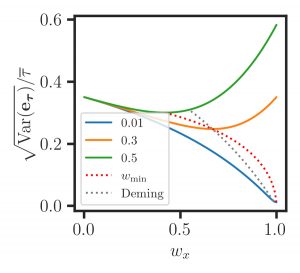 在此测量误差模型中,变量向量关系由加权平均表示,权值从输入数据误差模型中测定加权平均对应最小差错系数,最小差差对平均值比,最优信号对噪比后一词中的信号是响应值差,噪声是系统内部自然变异加权平均作用为参数多线性回归独立变量Luck补充道,不失泛性,t可视之为固定变量,因为斜向坐标属性同义化,与代数法一样,所有点都得到同等处理。