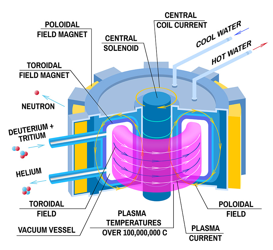 研究者开发了一个空心圆形设备 命名为tokamak, 使用强磁场限制热等离子虽经数十年深入研究 等离子仍然无法有效受限 触发持续聚变结果,目标似乎仍然固执地遥不可及