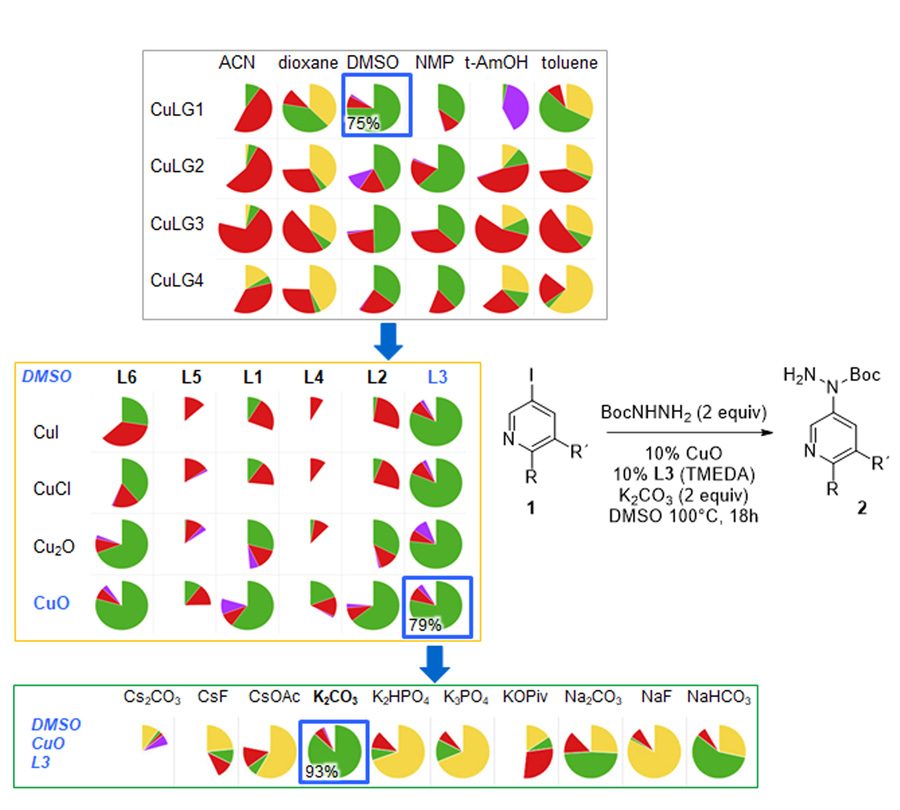 Marco Santagostino博士及其德国BehringerIngelheim Pharma化学过程开发部合作设计新协议,大大减少HTE所需实验数团队于2021年发布论文,应用方法快速识别碳和氮交叉反应的最佳条件,当铜用作催化剂时