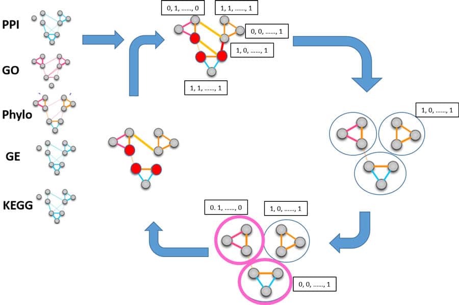 此外,系统自动假定一些蛋白质未知,并使用一系列其他比较特征来进行准确的预测。在该扫描期间,该算法考虑蛋白质 - 蛋白质相互作用,系统发育曲线相似性,基因共同表达,大规模途径相似性和基因本体性相似性。这种类型的综合组功能预测可以完全改善实际机制在工作中的实际机制的反映,例如发育或疾病导致的途径。