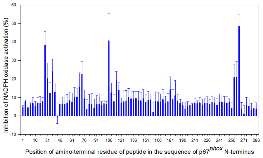在这一发现之后,教授选择的研究发展为两个单独的股线。在其中的第一个,教授选择和同事制定了一种称为“肽行走”的新方法。4.肽是蛋白质的组成部分。当应用于这项研究时,肽行走涉及到将NADPH氧化酶蛋白分解成它们的组成肽。这使得研究人员能够定义“活性位点”(以特定肽为代表)在每个成分和整个酶的功能中的作用。