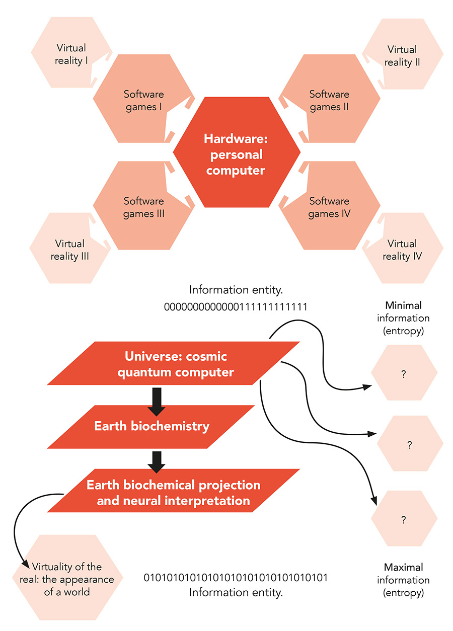 认知性通过脑中化学电文交换信息而产生,使生命能感知环境概念脑最复杂物块已知宇宙创造现实Verheen从这个意义上说,宇宙本身是一个巨型宇宙计算机,而我们事实上生活在“虚拟实境中”,仿佛游戏在宇宙量子计算机上展开