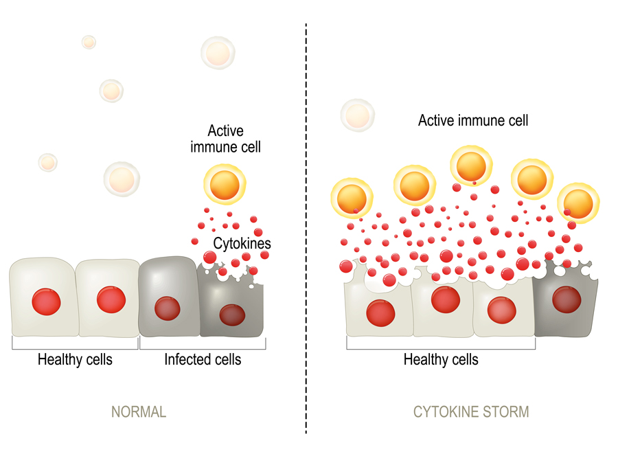 增强免疫响应可致超炎综合症,又称“细胞风暴”。Designua/Shutterstock.com