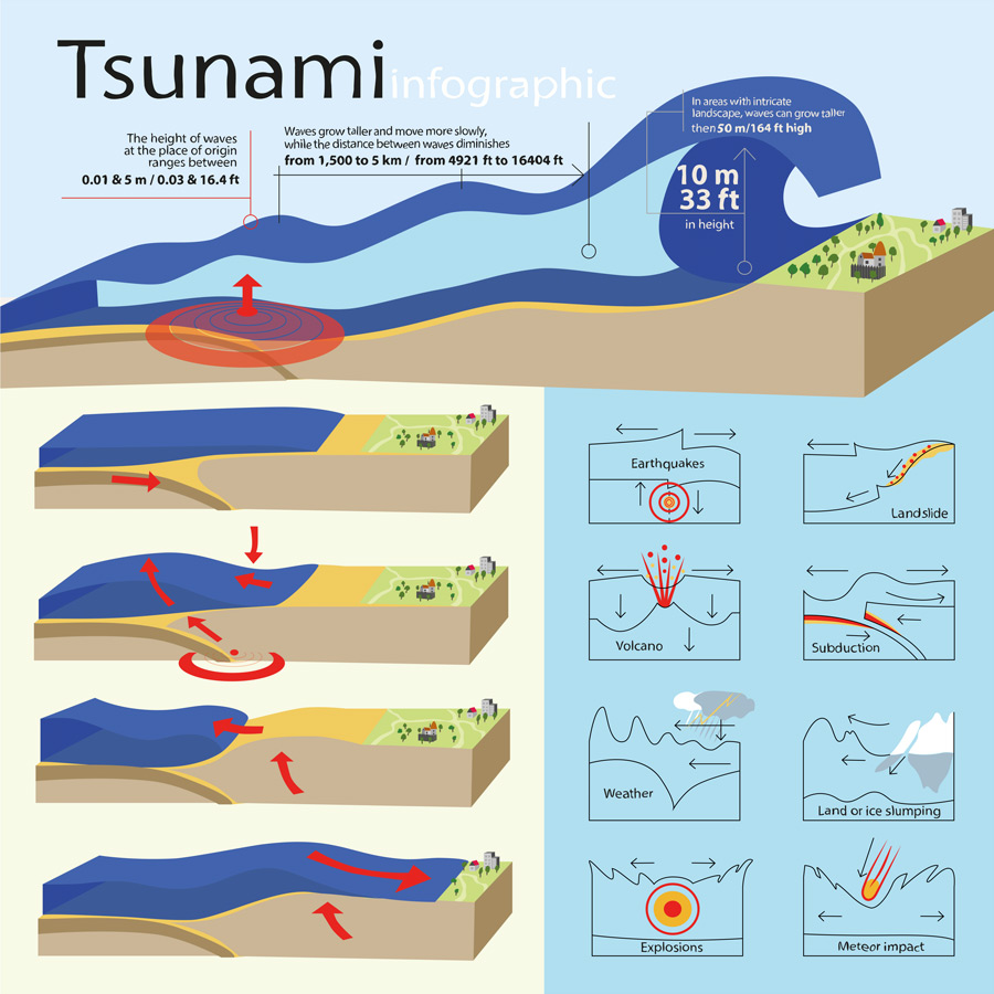 发生在浅层的大地震经常导致海啸。这些地震与发生在地壳深处的地震大不相同。它们可以持续更长时间,辐射不同类型的能量,并导致沿断层的大量滑动(岩石运动),从而导致海底变形和随后的海啸。然而,与更深的地震相比,它们通常只引起适度的地面震动,因此近地表地震引起海啸(海啸潜能)的可能性常常被低估。目前还没有模型可以解释或预测所有这些地震行为的差异,尽管大多数人认为复杂的断层行为可能是由于断层系统之间的地质差异和断裂深度。