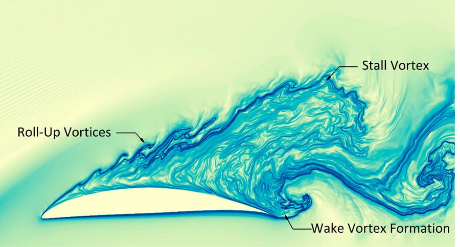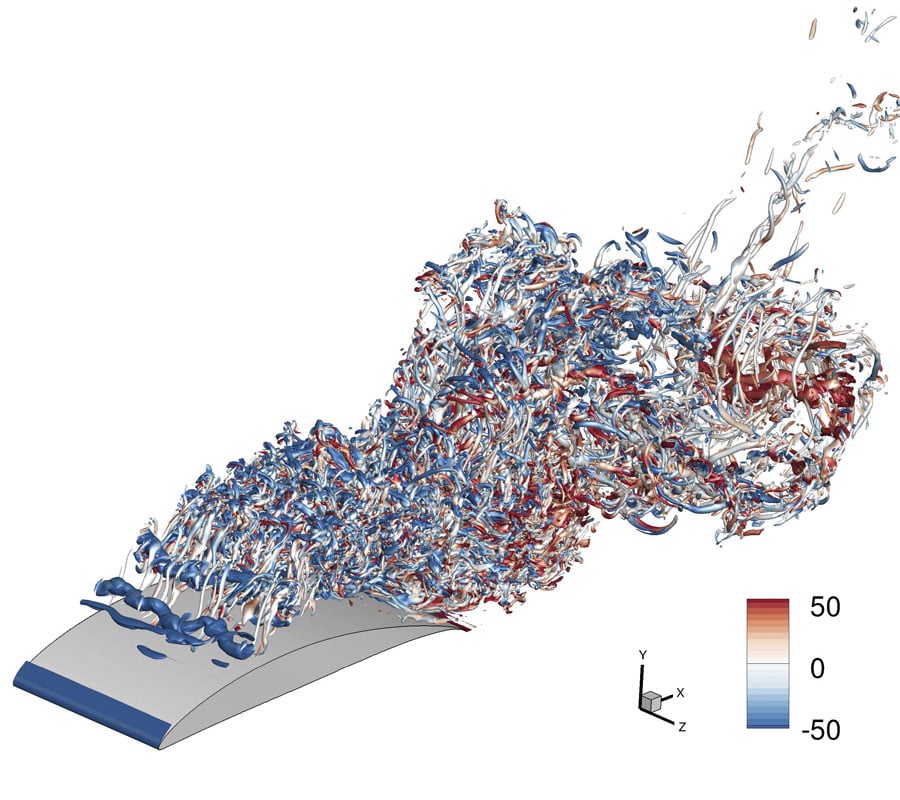 减少机翼噪声的关键要求是沿着边界的流动应保持与空气动力学表面直接接触。使用称为大涡流模拟的仿真,该团队能够证明具有前缘起伏的翼型具有边界层,该边界层流动仍然在攻击方面留在表面上的攻击而不是先前的设计。在过去十年中,他们已经证明,前沿起伏可能将电梯增加了60%并减少了相同的金额。他们还表明,过度可以大大降低产生的噪音,减少约10dB。