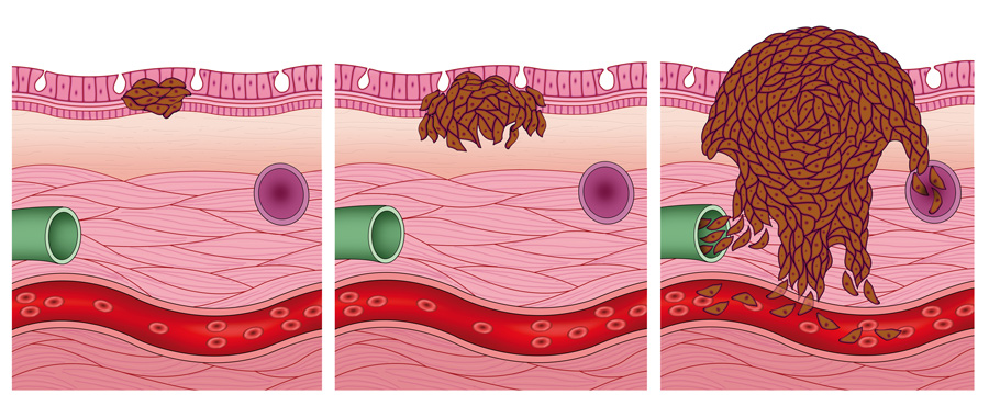 黑色素瘤是由皮肤中的黑色素细胞发展而来的,这些细胞负责产生黑色素,黑色素是皮肤色素沉着的化学物质,有助于保护身体免受紫外线辐射的伤害。然而,过度暴露在阳光下会损害皮肤细胞的遗传物质(他们的DNA)。这种损伤会导致细胞不受控制地增殖,最终导致癌症。转移性黑色素瘤发生时,起源于皮肤的癌症扩散到身体的其他组织。细胞从原来的肿瘤扩散到周围的组织,然后从这里进入血管。然后,血管就能够将癌细胞运送到身体各处,促进疾病的传播。