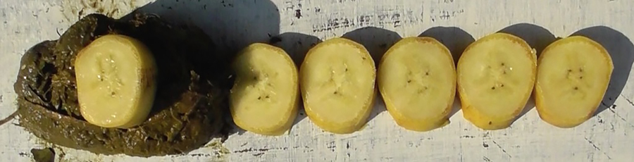 萨拉宾博士发现,不仅食物的外观很重要,气味也很重要。经过一些调查,倭黑猩猩忽略了强力清洁剂的气味,但粪便或腐肉的气味足以让它们对食物失去兴趣。同样,黑猩猩不会被没有气味的假粪便所欺骗,但如果香蕉片与真正的粪便气味有关,或者如果它们接触的东西与粪便或生物污染物的一致性有关,它们就会吃得更少。