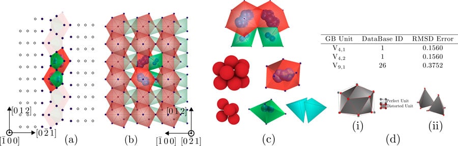 Patala博士的团队还开发了一种模式匹配技术,可以将晶界中发现的多面体与现有的硬球填充数据库(原子在模型材料系统中的排列方式)进行比较。这允许对在晶界观察到的多面体类型进行分类,并对其结构进行比较。