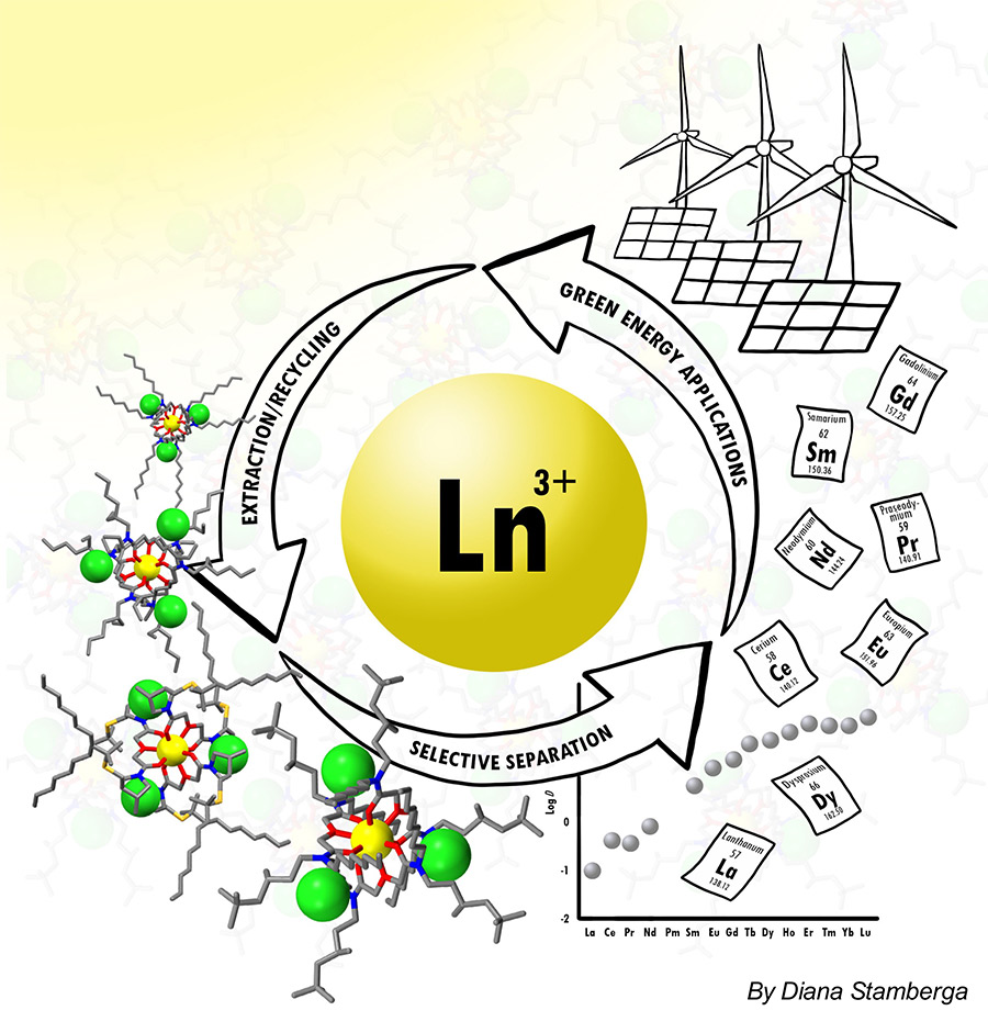 2010年,不断上升的需求与供应问题并存,引发了供应危机。这是由于获得稀土的困难。尽管每个元素都有自己独特的电子性质,但总体而言,这组元素在化学上有很多共性,这一直给化学家带来巨大的挑战,尤其是如何从彼此中提取它们。分离相邻的镧系元素(Ln)尤其成问题,因为它们往往存在于已开采的矿石中。