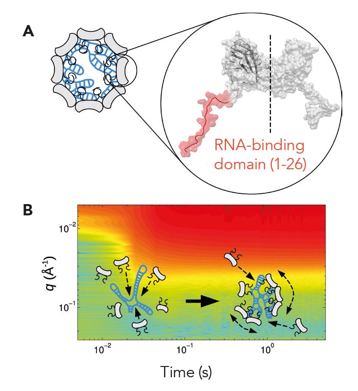 利用同步加速器辐射,研究小组测量了单个蛋白质亚基散射x射线路径的特征方式,这使他们对衣壳形成有了重要的新见解。“该病毒是由纯化的蛋白质亚基和基因组RNA重组而成的,它的自发组装是通过同步加速器源及时解决的小角度x射线散射法完成的,”Tresset博士解释道。随着空间分辨率足够高,可以捕捉到只有几纳米宽的结构,时间分辨率超过100毫秒,特蕾塞特博士的团队最终可以研究衣壳自组装过程中展开的确切机制。