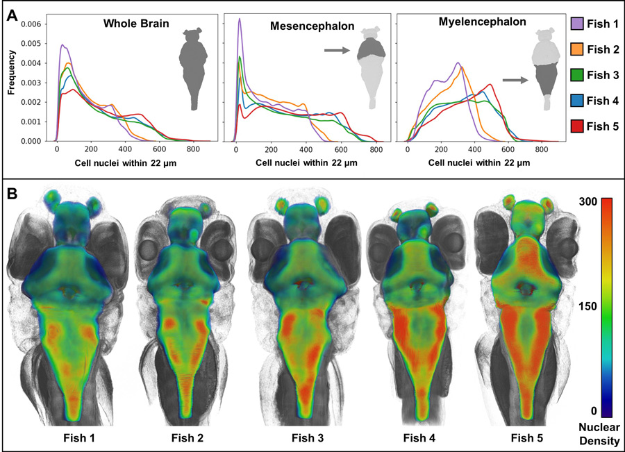 它的3D特性和厘米视野的结合使得x射线组织断层成像能够显示错综复杂的毫米到厘米尺度的结构,如肠道、骨骼、血管和神经束,同时保留了亚细胞分辨率检查细胞变化的能力。组织学特征通常是定性的,但科学上最有用的方法是定量的。x射线组织断层摄影术解决了这个问题,因为它可以定量地描述组织变化。组织断层成像前所未有地结合了所有细胞类型的可视化,高分辨率和规模,允许用户在整个样本的背景下分析细胞特征,如大小和形状。例如,大脑细胞的密度被计算出来,并在彩色地图上显示出同一天出生的斑马鱼兄弟姐妹之间惊人的个体表型差异。