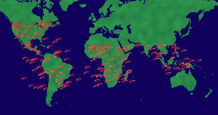 蚊虫可能是最有名和最受研究的向量以及疟疾(由寄生虫引起),蚊虫可携带并传播登革热、日本脑炎和黄热病等严重疾病昆虫向量包括滴子、虫、沙蝇和跳蚤在全球范围,病媒传播疾病占所有传染病的17%以上,每年造成700 000多人死亡。2018年,据世界卫生组织统计,有2.28亿例疟疾和405 000例死亡